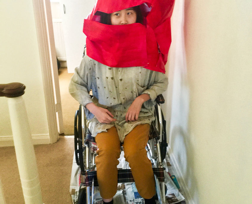 Riding a wheelchair myself in order to understand what it is like to be a wheelchair user.